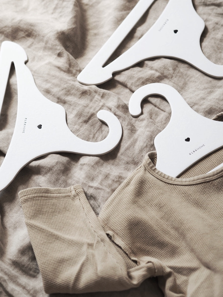 Ramínka jsou potištěna jemným srdíčkem a vybírat můžete ze tří barevných variant, tak aby vám ladily s šatní skříní a módními kousky vašich dětí. Kromě elegantních bílých ramínek můžete zakoupit také přírodní a černá. Velkou výhodou ramínek je, že mají jen 3 mm tloušťku, a tak ve skříni nezaberou příliš mnoho místa.